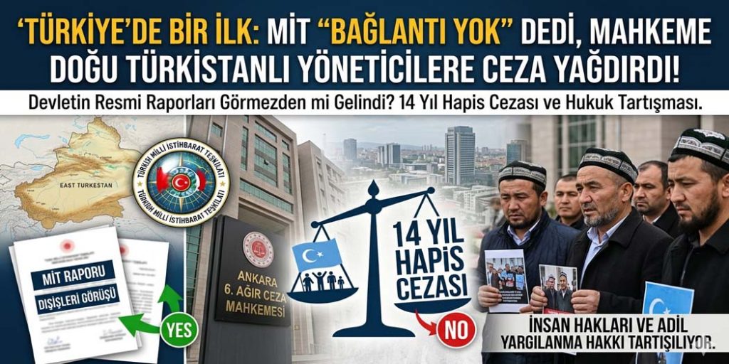 Ankara 6. Ağır Ceza Mahkemesi, Doğu Türkistan İslam Partisi üyeliği iddiasıyla yargılanan Türkistan İslam Derneği yöneticilerine toplamda 14 yıl hapis cezası verdi. Milli İstihbarat Teşkilatı (MİT) ve Dışişleri Bakanlığı’nın “örgüt bağlantısı yok” raporlarına rağmen çıkan bu karar, hukuk dünyasında “hak ihlali” tartışmalarını alevlendirdi.